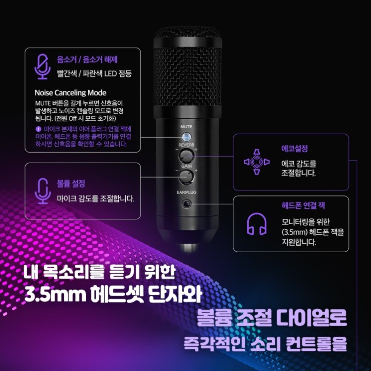 또한 저렴한 가격의 마이크지만 노이즈 캔슬링 기능도 탑재되어 있으며